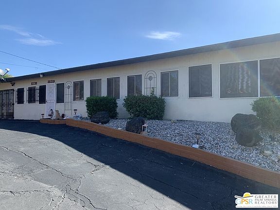 Catch the VIBE! Mid Century duplex in Spa zone of Desert Hot Springs. Duplex currently used as a single family. One wall is opened up,one kitchen has only rough plumbing. This property is a cosmetic fixer needing some updating. Very clean, lots of potential for investor. Elevated lot with great mountain views.