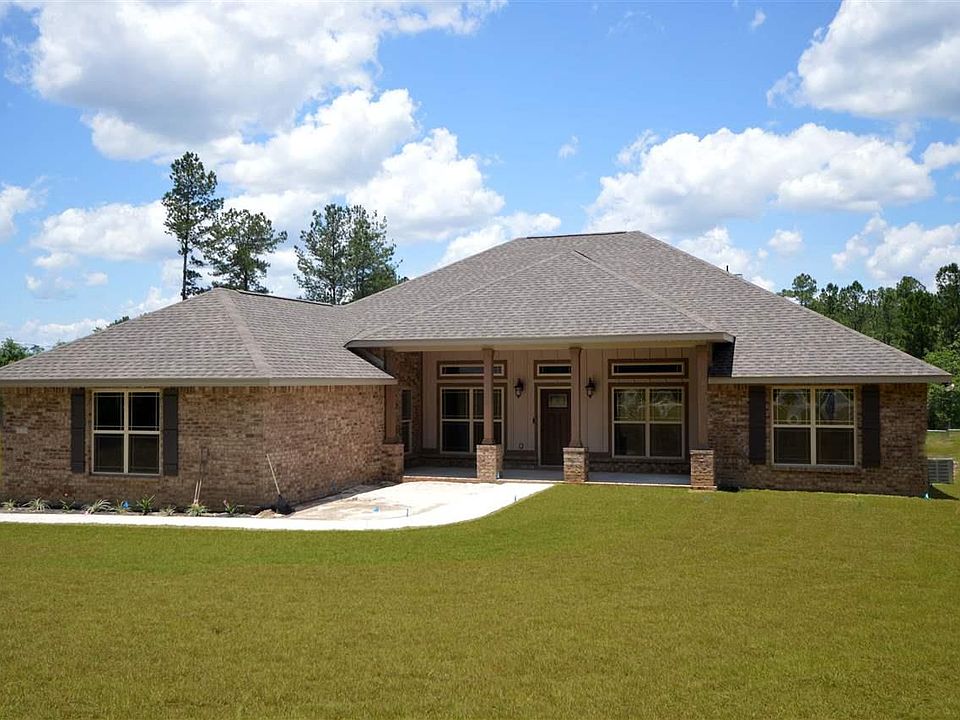 Presale. This home was customized by the buyer and price is for HOUSE ONLY. Includes 4 br, 3 full baths, dining room plus study and an open kitchen concept to family room; covered porch and a 3 car garage. Enter through a covered front porch into the foyer with dining area with box ceilings. Luxury vinyl flooring throughout the home. Floor outlets, open kitchen and stacked stone fireplace highlights the great room. The kitchen and baths have granite countertops. Kitchen has Stainless appliances and a breakfast area, breakfast bar and pantry. The master suite features a box ceiling, 2 walk in closets and a luxurious master bath with garden tub and custom TILE SHOWER/tub combination with glass enclosure. A separate water closet and double sinks on a raised vanity complete this room. There are 3 additional bedrooms and 2 full baths tucked away on the opposite side of the home. Granite in the bathrooms and kitchen, beveled edges, textured ceilings and walls, 10 ft. + ceilings in the common areas; 18’ garage door with opener & pull down attic stairs, and stand up attic trusses. Gulf Power earth cents certified.