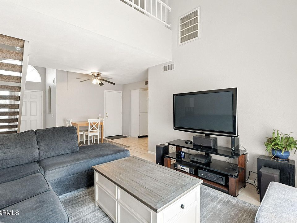 Welcome to your new home in the desirable Fountain Shadows community! This 2BR, 2BA townhome with loft/office and attached 2-car garage offers a smart split layout—one bedroom and full bath downstairs, with the spacious primary suite and loft upstairs. Enjoy the privacy of no neighbors above, below or behind! The open kitchen flows into the bright living area, and a private enclosed yard is perfect for pets, gardening, or relaxing. Tucked in a quiet interior spot within a beautifully maintained community featuring a sparkling pool and spa.