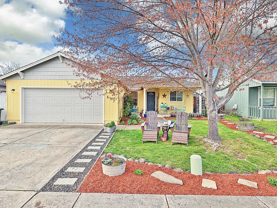 Great single level home that is move-in ready! Recent upgrades include new main bath flooring, counters, ceiling fans, and exterior paint. This home features an open floor plan, 3 bedrooms, 2 full bathrooms, 1258 sq ft, built in 2002. Spacious kitchen offers newer stainless-steel appliances to include range/oven, refrigerator & dishwasher. Primary bedroom has coffered ceiling, overlooks the backyard, attached main bathroom offers new shower and new flooring. Separate laundry room. Great backyard with beautiful landscaping, side yard for your toys or maybe a dog run. Attached 2 car garage, utility/small RV parking on the side of the home. Great location, close to Chamberlin Park and close to schools.