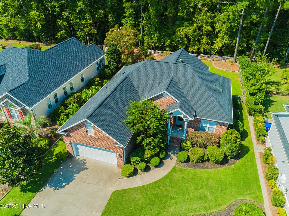 Welcome to this charming brick-front home tucked inside the prestigious gated golf community of Brunswick Plantation, where comfort and lifestyle come together seamlessly. From the moment you step inside, you're greeted with warmth and natural light in the foyer. The living room features a gas fireplace, natural light from a solar tube and a ceiling fan, creating a cozy setting for everyday living. The kitchen is designed for gathering, with a sunny eat-in nook with a bay window, while the formal dining room—currently being used as a home office—offers flexibility to suit your needs. Upstairs, the spacious flex room over the garage serves perfectly as a fourth bedroom, guest suite, or media space. The large primary suite is a retreat all its own, boasting an en-suite bathroom with a skylight, walk-in shower, and a generously sized walk-in closet. Guests will appreciate the ability to close off their area with a pocket door, giving them added privacy. Out back, the Carolina Room opens to a large patio overlooking the fenced yard, all set against a wooded backdrop for privacy and relaxation. It's an ideal setting for both quiet mornings with coffee and evenings of entertaining. Other features include a new roof and new HVAC (replaced in 2025), and the furniture is negotiable. With resort-style amenities, golf at your doorstep, and the charm of a gated community, this home blends comfort and convenience in one inviting package. Homeowners of Brunswick Plantation enjoy an active social committee and resort style amenities such as: an indoor pool, hot tub, fitness center, several outdoor pools, along with tennis and pickleball courts. Close to the restaurants and shopping in Calabash, and still only minutes to Sunset Beach and close to the attractions of Myrtle Beach. *note: listed square footage does not include Carolina room with it included the square footage is 2,246. Ask your agent about a preferred lender credit up to $2500!