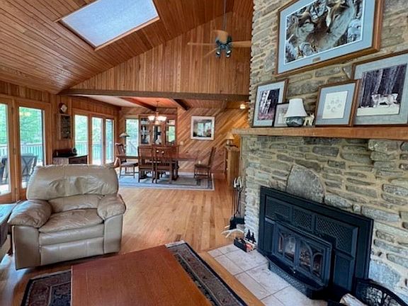 - Features: Fireplace, Wood/Coal Stove, Skylight, Ceiling Fan(s), Wood Floor, Cathedral/Vaulted Ceiling, Balcony/Deck