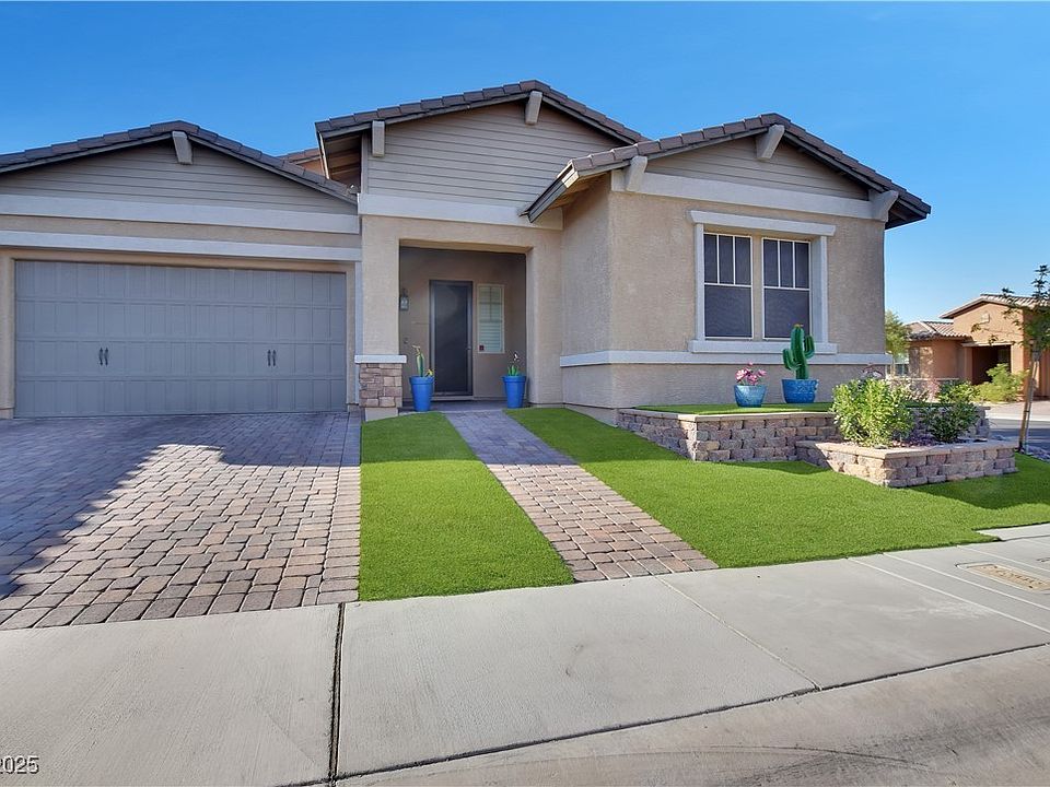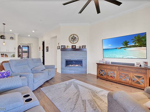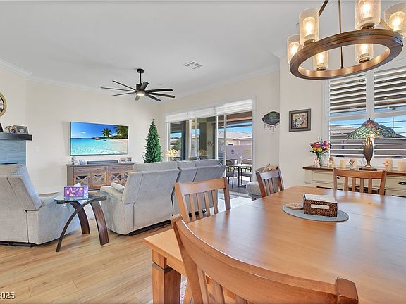 Beautifully upgraded home in a 55+ community, Heritage in Cadence master planned community. Highly sought-after open floor plan with volume ceilings has a spacious kitchen, dining, and living rooms. The gourmet kitchen has a large breakfast bar and features new quartz countertops, plus a new sink and faucet, and reverse osmosis. There is new water-resistant wood laminate flooring, new ceiling fans, new interior paint, a new primary bedroom custom closet, new crown molding, new remote-control battery-operated blinds, and new hardware throughout. The seller has added solar panels for energy efficiency, and they are completely paid off! On the exterior, there is new landscaping front and back. The lot is a premium oversized corner lot with an extended covered patio and pavers, great for entertainment. The Heritage community amenities include a sparkling pool, fitness center, tennis, pickleball, game clubs, art classes, an upstairs lounge with pool and much more. Pride of ownership!