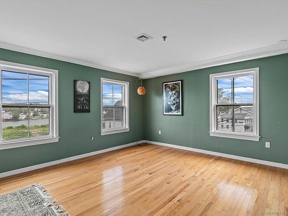 Perched high above Quinnipiac Ave, enjoy beautiful water views all year round from this spacious and updated 3 bedroom, 2.5 bath condo. The main level features an open kitchen/dining room with 10' granite breakfast bar, dishwasher, new stainless 5 burner gas oven and new stainless fridge. also on the main level is a half bath and bright, sunny main living area which overlooks the Quinnipiac River. All 3 bedrooms are located on the upper level, as well as laundry and the first full bathroom. Primary bedroom has matching his/hers walk-in closets and attached full bath. From here you can get extensive views of the river, down to the Q Bridge, up to the Estuary and beyond, to the top of East Rock Park and even Sleeping Giant. stay cool in the summer months with central air throughout the condo. Just a short distance to the Farm Belly Cafe and Q-River Grill, and across the river from the Fair Haven Oyster Co. Parking is also a breeze with 2 off street parking spots: 1 garage bay and an additional assigned spot. All of this is available now, with good credit and 1.5 months security deposit. This unit is dog friendly!