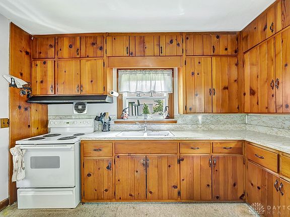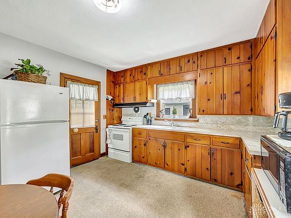 This well-built home features a bright 4-season room at the entry, perfect for morning coffee year round. Inside, enjoy original woodwork, ample storage, and a spacious living room that connects to a flexible space ideal as a dining room, office, or playroom. First-floor primary bedroom and newly renovated full bath. The large eat-in kitchen, with classic wood cabinets, ready for your updates, opens to a concrete patio and fenced yard on a generous corner lot. A detached two-car garage offers plenty of room for vehicles and extra storage. Upstairs, find a second bedroom with half bath and built-in storage, ideal for guests, kids room or a home office. Full basement. Located near shopping and schools in West Hamilton, this home is full of charm and potential!