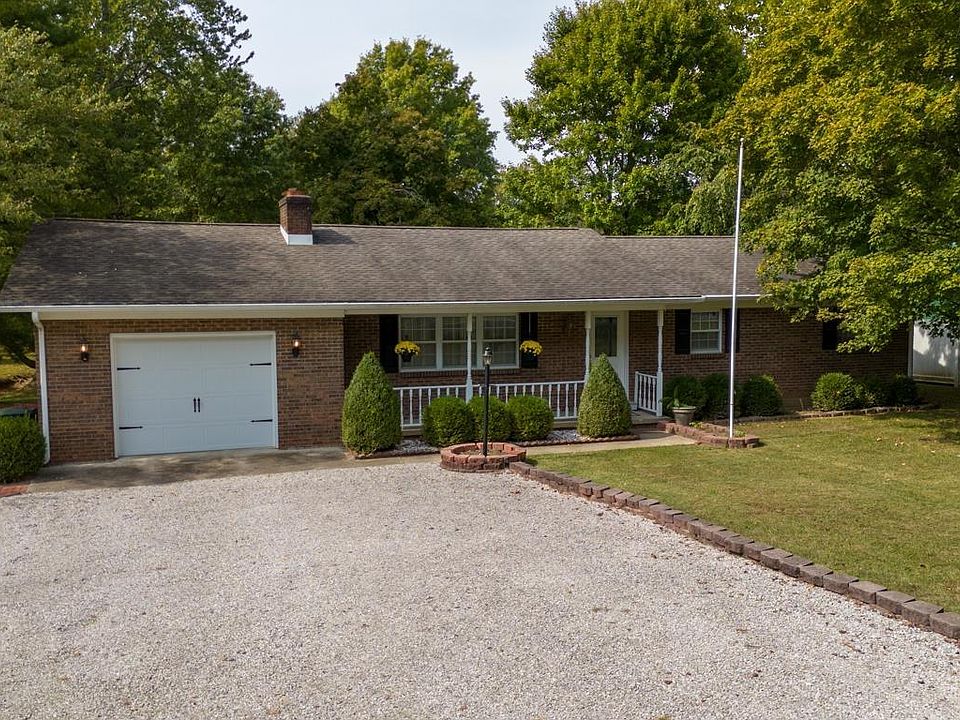 Welcome to this lovely all brick ranch home that sits on .66 acres. Feels like you are living in the country but are just minutes away from everything you will need. This all brick home has a large living room with brick wall and wood burning fireplace and opens to the eat-in kitchen with lots of counter space. Down the hall you will find 3 bedrooms and a gracious bathroom with a walk-in shower. Right off of the attached 1 car garage, is a 6x11 laundry room and an extra room that could be used as a craft room or office. Relax on the expansive covered back patio complete with 2 ceiling fans for added comfort and watch the leaves turn this fall in you own backyard.