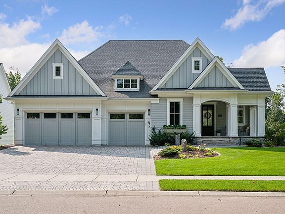 Stunning walk-out rambler custom built by Charles Cudd and overlooking the golf course at Medina Country Club! Elevated architecture and timeless design throughout the home with soaring archways, 9ft interior doors, gorgeous white oak flooring, and custom window treatments throughout. The home's gourmet kitchen features a cabinet-front Sub Zero refrigerator and dishwasher, Thermador induction cooktop, double oven w/steam convection, Quartzite center island, farmhouse sink, and large walk-in butler's pantry. A stunning primary suite with a beautiful freestanding Kohler Tub & an absolute dream closet w/ center island! The sprawling lower level features a custom bar with Marvel clear ice machine & bar seating that overlooks the golf simulator! Beautiful Trex decking on both patios & a large gas fire table on the paver patio is ideal for entertaining! A spacious & thoughtful floorplan to enjoy the ease of single-level living in this home that was crafted to perfection!