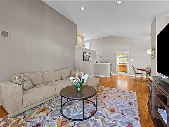 Fantastic, freshly painted split-level home featuring soaring ceilings, hardwood floors, and an open floor plan. The spacious living room flows seamlessly into the dining area with dramatic high ceilings, creating an airy and inviting space. The kitchen offers room for a small table and opens to a private backyard patio with a fire pit - perfect for entertaining. Upstairs, you'll find three bedrooms and an updated full bath. The versatile lower level can serve as a family room, fourth bedroom, or home office, and includes a full bath and large storage room. Recent updates include: new basement windows (2024); new hot water heater (2024); new basement carpet (2024); all-new professional landscaping with perennial gardens; and new wooden privacy fence (2024). Enjoy carport with extra wide driveway that fits 2 cars. Located in a prime spot close to town, parks, and the expressway. Walking distance to Wilmot Elementary and part of the award-winning Deerfield school district. Available for immediate occupancy - don't miss this move-in-ready gem!