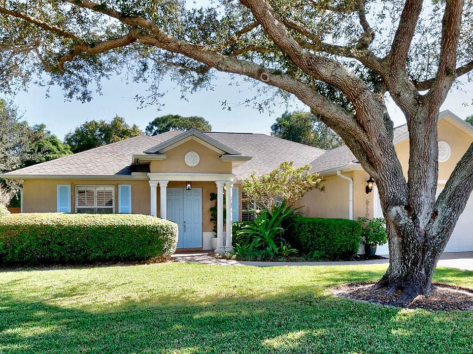 Beautiful home with split floor plan, 3-bedroom, 2-bathroom, on large .3 acre lot in Vero Beach. This pristine property features a spacious open floor plan with tile floors throughout common areas, 9 foot ceilings with crown molding, plantation shutters, living and family rooms lead out to patio, perfect for entertaining guests. The kitchen boasts modern appliances and beautiful cabinetry with ample space. The primary bedroom offers a private retreat with walk-in closet, large bathroom with double sinks and walk-in shower. Enjoy a covered patio and private fenced backyard with lush tropical landscaping, even room for a pool! New Roof in 2022. Located in lovely Crystal Falls gated neighborhood with low HOA. Don't miss out on this wonderful opportunity to make this house your home!