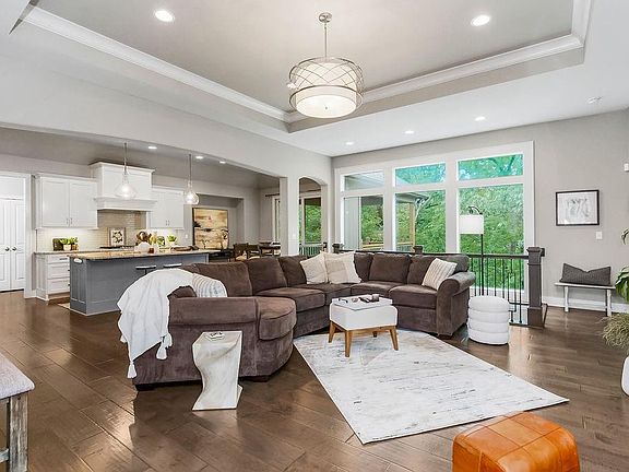 This gorgeous reverse 1.5 backs to an HOA-owned permanent deep tree line! This private oasis has been thoughtfully designed to boast a wide open floor plan with huge windows across the back for tons of natural light and incredible views with stunning plantation shutters. The main floor features gorgeous hardwoods, bright kitchen with large island and gracious amount of cabinets & counter space and a walk in pantry. Primary suite with large walk in closet conveniently next to the laundry room. 2nd bedroom and full bath on main level. Lower level with wet bar, game area, family room, two bedrooms and another full bath. There are 3 areas to enjoy the private back yard- upper covered deck, covered patio underneath and open patio. Plenty of space for all your outdoor grilling and entertaining. Yard is sprinklered. Home is only 7 years young! Located minutes from anywhere in the city and in the award-winning DeSoto school district. Ridgestone Meadows is a hilltop community with only 142 homes and a community pool!