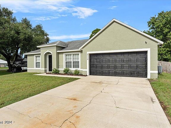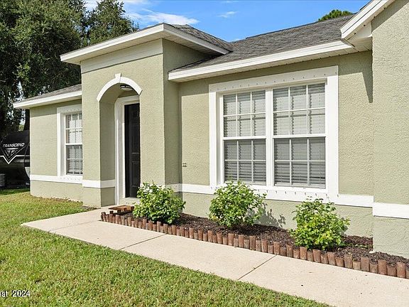 Nestled on an acre of land, this beautifully remodeled 3-bedroom, 2-bathroom home is a perfect blend of modern elegance and country charm. Step inside to discover an inviting open floor plan with vaulted ceilings that create a sense of spaciousness throughout. The split floor plan offers privacy, with the primary suite thoughtfully separated from the additional bedrooms. The heart of the home is the stunning kitchen, featuring stainless steel appliances, warm butcher block countertops, custom cabinetry, wine fridge and coffee station. The open design flows seamlessly into the living and dining areas, making it ideal for both everyday living and entertaining. Fresh interior and exterior paint provide a crisp, clean look, while laminate flooring in the main living areas and cozy carpet in the bedrooms add a touch of comfort. The primary suite is a true retreat, boasting a walk-in closet with a custom organizer to keep your wardrobe perfectly arranged. The en-suite bathroom has been fully remodeled designed for relaxation with modern fixtures and finishes. Outside you will find your private oasis, a tranquil koi pond that adds a soothing ambiance to the backyard. The expansive fenced in yard offers endless possibilities, from gardening to rocket launch views. Evenings can be spent gathered around the fire pit, enjoying the peaceful surroundings. A two-car garage provides ample space for vehicles and storage, while the large lot offers plenty of room to park additional vehicles, RVs, or boats. Vivint home security system and hurricane shutters. This home is a rare find all within a short drive to local dining, shopping and beaches. Don't miss out on making this your forever home.