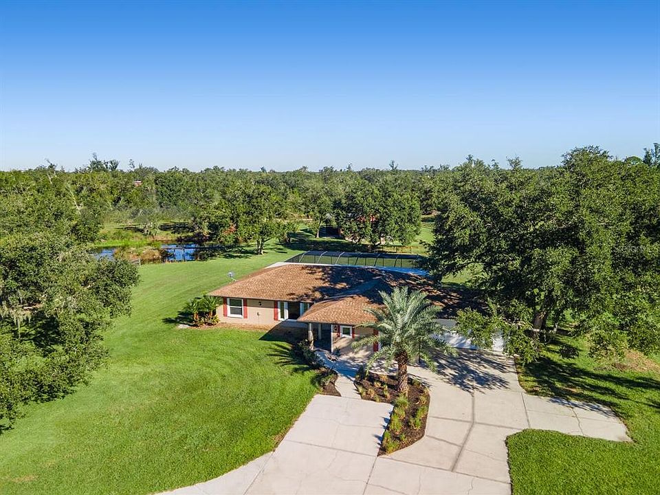 Price Improvement! Owner is Motivated! Are you looking to live in Sarasota but still want the country lifestyle? Look no further… This is your new home! Located just 15 miles to Siesta Key Beach, this 6.2 acre property in the equestrian community of Myakka Valley Ranches features a concrete block home with 3 Bedrooms, 2 Bathrooms, a den, pool, 2-car garage and a huge 5-stall barn. As you enter the property, you’ll notice the ranch head gate, cement driveway, large parking pad, as well as, the gorgeous granddaddy oaks, green pastures and the convenient cross fencing for your animals. The home itself has great curb appeal with big glass windows and a neutral color scheme. The interior of the home has a split floor plan and boasts 2,376 ft. of living space including two potential primary suites with views of the pool, a guest room and a large bonus room that could be used as an additional bedroom, den, office, library or fitness room. Every room has a large closet or two for storage. The kitchen has been previously updated with stainless appliances, wood cabinets and granite countertops. The bathrooms have also been updated with glass shower enclosures. The entire home has been wired for a security system, including cameras. Additionally, there is high-speed fiber optic internet available with Myakka Communications for your work-at-home needs. You'll love the pool area for entertaining with its large 14’ x 60’ covered porch, newly screened pool cage, heated pool and views of the classic barn. Just out back, the 40’ x 48’ barn has 5 stalls, a tack/feed room, a wash rack, electric and fans. Don’t miss the pond (stocked with fish) and a small island reachable by the dock. Bring your horses, toys, dogs, cats, chickens, donkeys (This property is high and dry!) and come see what Myakka Valley Ranches has to offer with its 35 miles of walking and horseback riding trails, 2 nature parks and much more. Close to A+ schools, the largest state park in Florida and everything Sarasota has to offer. Make your appointment to see this home today!