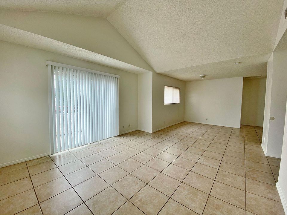 2 Bed/1Bath upper apartment unit with a 2 car garage included. Spacious living room with a sliding door that leads to a skyview balcony. Kitchen comes with furnished cabinets and a NEW stove for all your cooking and baking needs. 2 lovely bedrooms, one with a sliding door that leads to the balcony. You need to come see it! If you would like to schedule a showing, please call/text Fernando 562/599/9042. A mask is required for a showing. 1 Year Lease