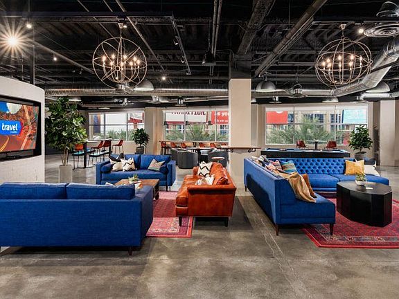 - Exterior features: Barbecue, Bicycle storage, Corn-Hole, Fire Pit, Flooring: Concrete, Foosball, Indoor Corn-Hole, Indoor-Outdoor Kitchen, Lofty 13' Foot Ceilings With Exposed Duct Work, Modern Cabinetry, Package Receiving, Ping Pong, Pool Table, Quartz Countertops in Kitchen and Bath, TV Lounge, Yoga Room