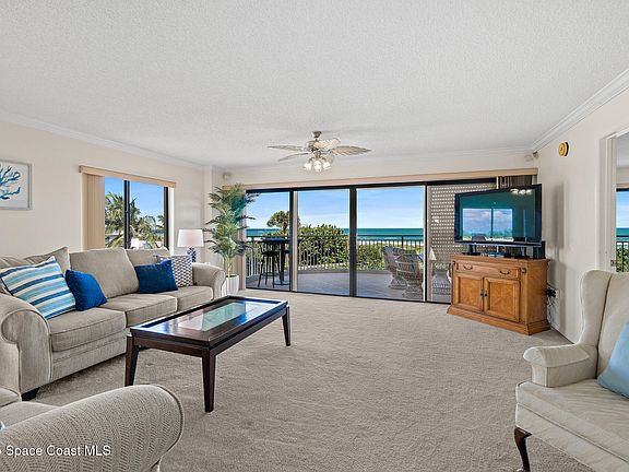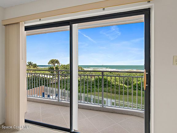 This fully furnished oceanfront sanctuarty has panoramic views of the Atlantic ocean and balcony perfect for watching launches. Morning sunrises, waves all day long, end unit with additional windows for lots of natural light and open floor plan, beach access, pool, one garage parking spot, Available for 3 months or long term. No pets.