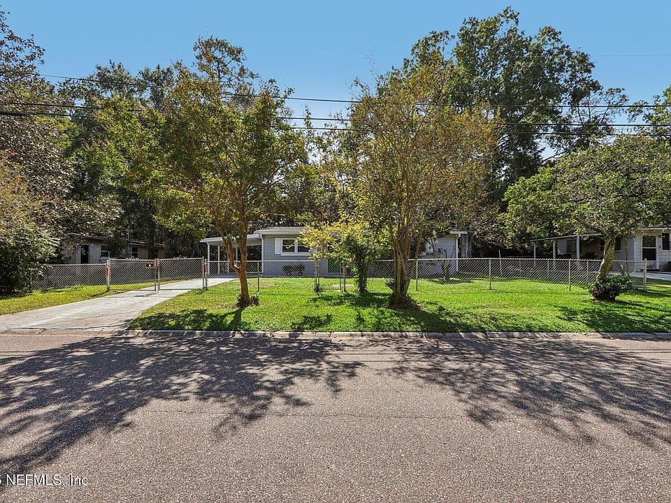 This home is a must see! Move in ready concrete block home with a carport, and a spacious lot. Shaded back yard that is fully fenced in. The back yard just had a new privacy fence installed along the back property line. Roof and water heater were replaced in 2021. Gutters along the front and back of the home. All Stainless steel appliances featuring a gas range, and white cabinets in the kitchen. All appliances stay with the home including the washer, dryer, and microwave. Front door, and side door upgraded in 2024. The home has hard surface LVP flooring throughout. Indoor laundry room. No HOA or CDD fees. Convenient to 295, NAS Jax, and the great shops in Murray Hill, Riverside or Avondale.