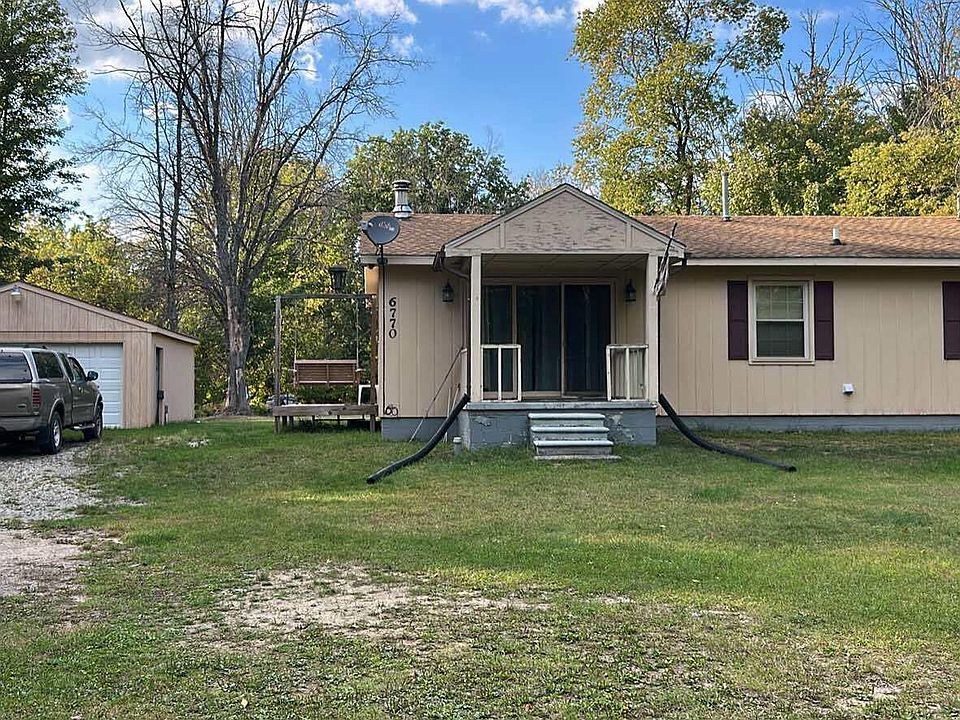 Charming 2-bedroom, 1-bath home situated on 4 acres, offering 1,040 sq. ft. of living space. This property features a detached 2-car garage providing ample parking and storage. Enjoy the peace and privacy of a spacious lot while maintaining comfortable living indoors. A great opportunity for buyers seeking country living with room to grow.