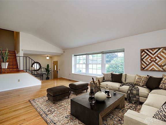 This well-maintained, spacious Colonial in the Northmont School District offers 4 spacious bedrooms, 2 ½ bathrooms. Newer central air (2022), new furnace (2023), newly shingled roof (July 2023). The impressive en-suite bathroom was recently remodeled, and the other full bathroom upstairs was remodeled 3 months ago. The wall mounted TV in the primary bedroom is included. Cute and convenient first floor half bathroom. There are wood floors in the living room and dining room. The kitchen includes the stove, refrigerator, dishwasher, countertop microwave, and has beautifully marbled quartz countertops! The family room is the perfect gathering place for friends and family, with a fireplace. The family room exits to the patio, overlooking the spacious backyard with a storage shed and an 18-foot round above-ground pool with a deck. The pool includes a pump, filter, vacuum pool cleaner, and solar cover. The unfinished very clean basement houses a utility sink, and the washer and dryer are included with the property. The 2-car attached garage includes a refrigerator/freezer that conveys with the property to help store more drinks and food for the pool parties you will want to host on the back porch! With the fall/winter holidays approaching, you will be happy to learn that you can have occupancy at closing in order to host family and friends for holiday gatherings!
