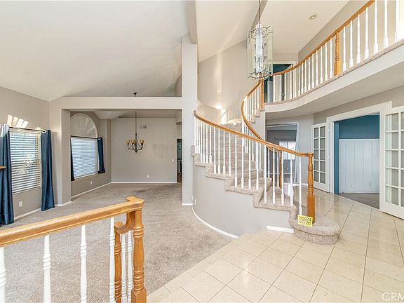 Situated on a private cul-de-sac in a desirable Rancho Cucamonga neighborhood, this 4-bedroom executive residence offers 2,543 square feet of refined living space. The home makes a striking first impression with a grand double-door entry, soaring cathedral ceilings, and an elegant spiral staircase. Wood flooring flows through the formal living and dining areas, leading to an open-concept kitchen designed with granite countertops, a center island, double ovens, and a walk-in pantry. The kitchen opens seamlessly to a spacious family room anchored by a cozy fireplace, creating an inviting hub for daily life.