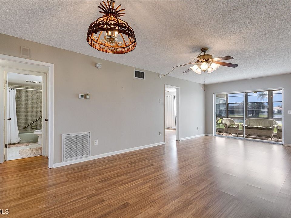 Discover this unbeatable first-floor LAKE view condo in the heart of South Fort Myers. This 2-bed, 2-bath gem is perfect for golf enthusiasts, with 2 courses the Cypress Lake Golf Club & Myerlee Country Club just across the street. Enjoy low HOA fees in this 55+community. As you step inside, you'll appreciate the all-season enclosed lanai provides extra living space and fills the home with natural light, offering stunning lake views. Stylish vinyl plank flooring spans the entire condo, creating a seamless flow from the open living area to a spacious storage closet. The kitchen is a highlight, featuring stainless steel appliances and elegant granite countertops. While the washing machine and dryer are on the mezzanine, the option to install them in the pantry next to the kitchen adds convenience. This condo is nestled in an active 55+ community with NO pets allowed, offering a clubhouse with billiards, exercise room, community room, and a library. Outdoors, you'll find a BBQ station, a refreshing pool, and beautifully maintained grounds. The location is simply unbeatable, stunning beaches, many dining options, Publix Super Market, and the convenience of Costco Wholesale.