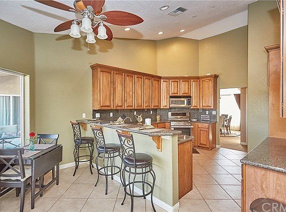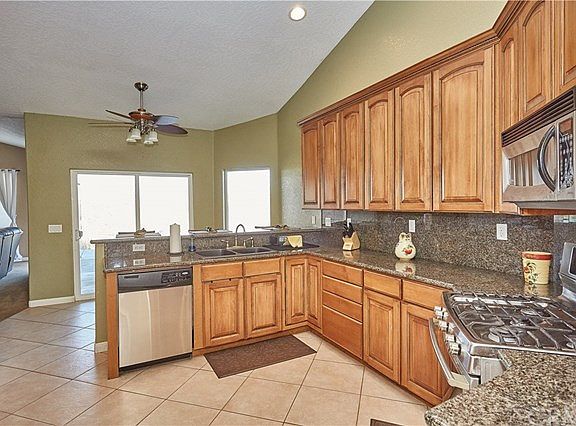 Custom built property located in the highly desirable area of Hesperia. This single story sprawling estate offers 2,490sqft of living space on 40,500sqftLot, just shy of 1 acre. Estate offers 4 large bedrooms, 3 bathrooms with custom tile, shower, jacuzzi tub and vanity/cabinets in the master suite. High ceilings vault the interior of the property, recessed lighting with privacy and separation from all living quarters; living-room, dining-room, family-room, breakfast nook, bedrooms to kitchen. The perfect layout. Excellent kitchen craftsman ship, granite countertops, custom cabinetry, large pantry with bar style seating, perfect for chef inspired home owners as well as an entertainers desired layout. This estate is upgraded throughout a must see. Rear patio offers covered patio with an incredible view.