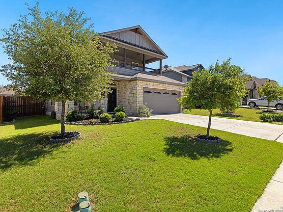 This beautiful two-story home in the desirable community of Homestead offers comfort, space, and style with a functional layout designed for everyday living. Featuring four bedrooms and two and a half baths, it provides a great balance of shared and private spaces. Step inside to a bright, open Castlerock Seminole II home floor plan with high ceilings and abundant natural light. The spacious living room centers around an electric fireplace, creating a warm and inviting atmosphere. The open-concept design flows seamlessly into the dining area and kitchen, which features an island, breakfast bar, gas cooking, stainless steel appliances, and 42" upper cabinets-perfect for casual meals or entertaining. The primary suite on the main level offers privacy and includes an ensuite bath with a soaking tub and walk-in shower. Upstairs, you'll find three additional bedrooms and a loft area that can serve as a playroom, home office, or second living space. From the upstairs balcony, take in relaxing neighborhood views-a favorite spot for unwinding at the end of the day. Outside, the backyard is a true highlight. The extended covered patio with wood beams and a cathedral ceiling is the showpiece of the home, offering plenty of room for outdoor dining and gatherings. There's also a deck, lawn area, and an included 8x8 Tuff Shed for extra storage. Located just off IH-35 with easy access to Loop 1604 and local shopping, this home offers both convenience and community. Residents of Homestead enjoy access to a pool, exercise room, clubhouse, and scenic walking trails. Schedule your personal tour today and see all that this wonderful home has to offer!