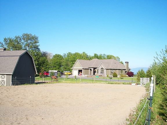 Beautiful home in a beautiful setting. On a private, newly paved road this home features stunning views of Mt. Baker, 10 & 12 foot ceilings, a great kitchen w/tons of cabinets & gorgeous granite counters. A fireplace in both living & family rooms, large den with 2 double french doors, large master suite with views & access to back patio, large guest rooms all in the great NW craftsman style. Property is fenced & includes a new 24x36 barn w/2 stalls (c/b 3), heated tack room & hay loft. Quality!