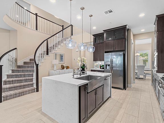 Welcome to this exquisite 5-bed, 5.5-bath home located in the desirable Sanctuary Village community in Newark. Spanning 3535 sqft. it offers a blend of comfort, modern style and smart living. Enjoy the open feel created by the soaring 10-foot ceilings at the main level and 9-foot ceilings upstairs complemented by durable porcelain tile flooring, plush carpeting, recessed lighting and custom chandeliers. The gourmet kitchen is equipped with high-end appliances, premium quartz countertops and a waterfall island—perfect for everyday living and entertaining. A convenient bedroom with en-suite bath on the main floor is ideal for guests or multigenerational families. Upstairs, the oversized primary suite offers a spa-like retreat with a freestanding tub, dual vanities, and a spacious walk-in closet with direct access to the laundry room. Step outside to a custom Moroccan-inspired backyard, featuring a stone fireplace and a decorative water fountain, creating a serene atmosphere for relaxing or hosting. Smart and energy-efficient features include: Smart Hub, 2-Zone central heating/AC, EV prewired, Tankless water heater, Owned Tesla Solar system. 2-car attached garage with additional storage space. The home is minutes from major employers, commuter routes, shopping and dining.