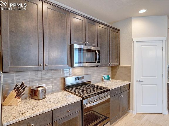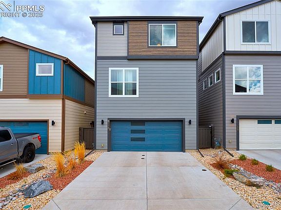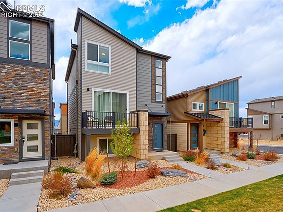 Your new home is in the perfect location—close to shopping, dining, hiking trails, and offers an easy commute to Peterson SFB, Schriever SFB, and the Air Force Academy. Plus, it has a VERY attractive assumable loan opportunity! This beautifully designed “like new” low-maintenance home offers smart home technology and modern high-end finishes throughout . The open-concept main level showcases a bright and airy layout, featuring a stylish kitchen with 42” cabinets, granite countertops, a spacious island and large dining area—ideal for entertaining. From the living room step out onto the private deck with natural gas hookup, ready for summer grilling. Upstairs, both bedrooms include their own en-suite baths, creating private retreats. On the lower level the flex space adds room for a home office, workout area, or guest suite. The oversized two-car garage gives you plenty of room for your vehicles, plus extra storage . Don’t miss out on this one!