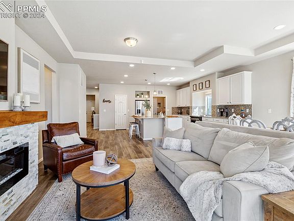 Welcome home to this amazing 3 bedroom plus office, 3 bathroom, oversized 2 car garage home in the heart of Banning Lewis Ranch! This home has all the designer touches your buyer could want! Enjoy this friendly neighborhood from your covered front patio! Step inside to find beautiful LVP throughout the main level living areas as well as all of your wet areas! The main level office offers beautiful double barn doors for privacy, built in shelves and cabinets, and plenty of space to work from home! The master suite is a beautiful sanctuary with a gorgeous master bath attached as well as a nice sized walk-in closet! The gourmet kitchen offers a huge island for gatherings as well as gorgeous designer tile backsplash! There is a generous sized pantry as well as ample countertops for the chef in your family! All the stainless steel appliances are included! The great-room is awesome for those friendly gatherings with loved ones and offers a gorgeous fireplace with a mantel that has hidden storage! Enjoy countless delicious meals in the adjoining dining space. Walk-out from your dining area to the custom paver deck and fully landscaped maintenance free backyard with nice flowering trees and bushes as well as a green turf area! There is an additional bedroom and full bathroom on this main level! Head downstairs to the lower level to find a fantastic family room! This area offers a two sided wet bar, with bar sink and plenty of cabinets, upper and lower, for entertaining! There is plenty of room for gaming tables as well as a large area for hanging out and watching movies! The basement bedroom is large and located right next to the 3rd full bath! There is an additional unfinished space that could be easily converted to livable space! With A/C for those warm Colorado summers, there is nothing left to do here but move in!