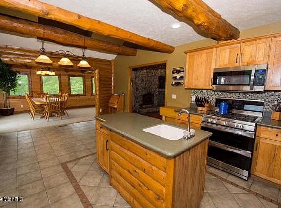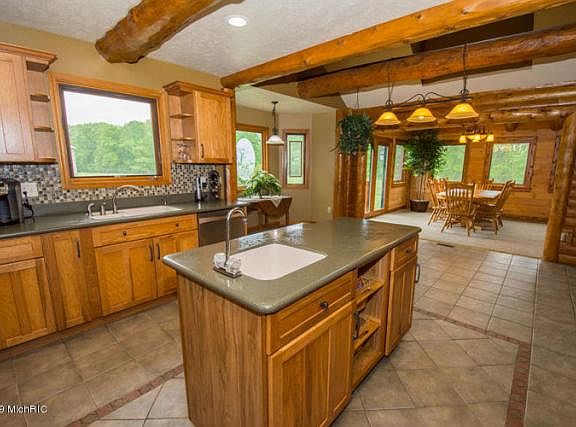 Follow your Bliss in this sprawling Amish built conventional log home. Sitting far off the road on 40+ acres with over 5000 square feet of finished living space. Five bedrooms and four full baths this home could accommodate the largest of families! The sauna and heated floors and family room with a pool table and a work out center in the lower level are a must see. Relax by the 20x40 inground pool complete with electric cover. The pool house with independent windows makes entertaining a breeze! The spectatular home sits off the road past the pond and tucked back by the woods for quiet country days and nights. The Equestrian barn and indoor riding arena offer seven large stalls, a birthing stall, a tack room and seperate wash area. Each stall has independent water door and hay door.There is storage for up to 1600 bales of hay. Two large fenced pastures are ready to use! Use the additional 46x76 Service building for all your storage needs or convert it into another equestrian center! This property truly has it all. An automatic gate with paved drive will bring you down the tree lined winding drive past the pond to the home. The home has a new metal roof- 2017 with new iron posts on the wrap around porch. The home has leaf guard gutters and a pond with an aireated working wind mill. Underground sprinklers keep the well manicured yard looking top notch! The lower level walkout features a sauna, heated floors, a pool table, poker table, beautiful bar area, complete with it's own mirrored work out center and equipment. This home truly offers the finest amenities! The property has artesian wells in the woods which also offers great hunting. Welcome to Fantastic with this one owner retreat, ready to welcome it's new family!