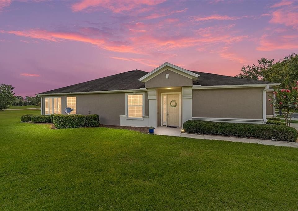 GOLF COURSE AND LAKE VIEWS! This gorgeous Alexander Villa with stunning views is located in the neighborhood of Santa Fe in Stone Creek by Del Webb. The well maintained home features 2 bedrooms, 2 baths, large flex room and 2 car garage. The home has beautiful tile flooring on the diagonal throughout main areas and in bathrooms. The kitchen has upgraded stone countertops, stainless steel appliances, tiled backsplash, recessed lighting, and cafe area with views of golf course. The kitchen opens to spacious living room with ceiling fan. Separate dining area. Primary bedroom with ceiling fan, vinyl flooring and views of golf course. Primary bathroom has upgraded tiled shower with frameless glass door, Walk-in closet. Split guest bedroom and guest bathroom with tub. Laundry room has sink and folding counter. Unbelievable enclosed lanai with glass sliding doors all the way across the back giving you endless views of the golf course and lake. The Stone Creek resort style community for Seniors of 55+ offers many amenities. Enjoy golf courses and golf cart trails, tennis, pickleball, basketball courts, fitness center, game rooms, outdoor and indoor swimming pools (two heated Olympic-size swimming pools), two jacuzzies and a Turkish steam room. Year-round social events and activities too. Convenient location to everything: shopping, restaurants, medical, nature and parks, and the World Equestrian Center of Ocala, arts and theater. Nearby Attractions include the Silver Springs State Park with glass-bottom boat tours, Silver Glen Springs & Juniper Springs, Salt Springs, Sholom Park with a Japanese Zen Garden plus many other nature parks. Santos Trails with paved bike trails, Historic downtown Ocala & Appleton Museum of Art and Civic Theater. For easy travel you can access major airports and ports from Ocala. Ocala International Airport (about 7 mi.), Orlando International Airport (about 90 mi.), Tampa International Airport (about 100 mi.), Miami Airport (about 300 mi.) and Gainesville Regional Airport. 24-hour guard gate. Pets okay but must be individually approved. All utilities included with price of monthly rent. Furnished. No Smoking. Minimum 6 Months lease. Pets with approval.
