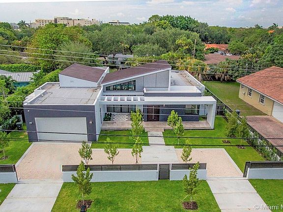 This home is a contemporary design on a large 14,300 square foot lot, beautifully landscaped, The home is a one-story design consisting of four bedrooms and den, which can be converted to a 5th bedroom. Each room has a private bath with modern fittings and glass shower enclosures. The 18 x 28 great room has a sloped ceiling, exposed steel and wood structure, and reaches a height of 20. Perfect for entertaining, the great room opens onto a fabulous patio and pool area. Italian Kitchen by Astra. Emergency back-up generator. Unique solid wood and steel Front door by Roatan. High performance insulation and high efficiency air-conditioners make this a very green home.