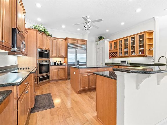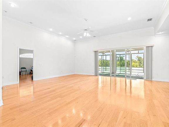 One or more photo(s) has been virtually staged. Welcome to your dream home! Nestled in a serene HOA community with direct golf course views, this 3-bedroom, 2.5-bathroom residence offers the perfect blend of comfort, elegance, and lifestyle. Beautiful and spacious home on 0.3 acres, oak floors throughout. Grand entryway and large living room with 12' ceilings, gorgeous kitchen with maple cabinets. Property Highlights: Spacious Living: Open-concept floor plan with abundant natural light.. Gourmet Kitchen: Granite countertops, modern appliances, and a breakfast bar—perfect for entertaining. Primary Suite Retreat: Generous bedroom with large walk-in closets, garden bath featuring dual sinks, soaking tub, and separate shower. Additional Bedrooms: Two well-appointed bedrooms with walk-in closets share a stylish full bath, plus a convenient half bath for guests. Outdoor Living: Private lanai overlooking the lush #5 fairway—ideal for relaxing with morning coffee or evening sunsets. Huntington Hills is beautiful and well maintained HOA community with over 395 homes, recreation center, pool, tennis/pickleball, memorial park. The community is built around the Huntington Hills Golf Club (separate entity) with both golf memberships and walk-up play available, bar/restaurant open to the public. This stunning home offers the best of resort-style living with the comfort of a private residence.
