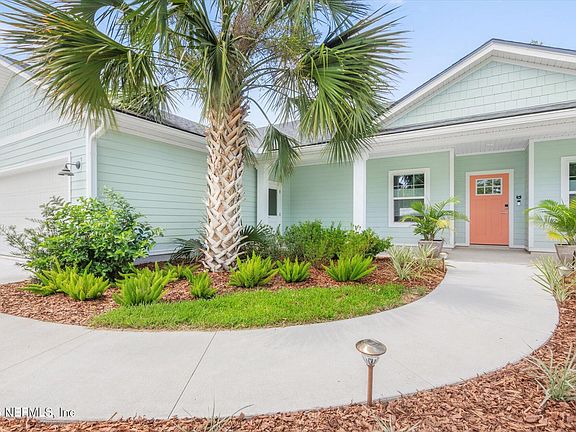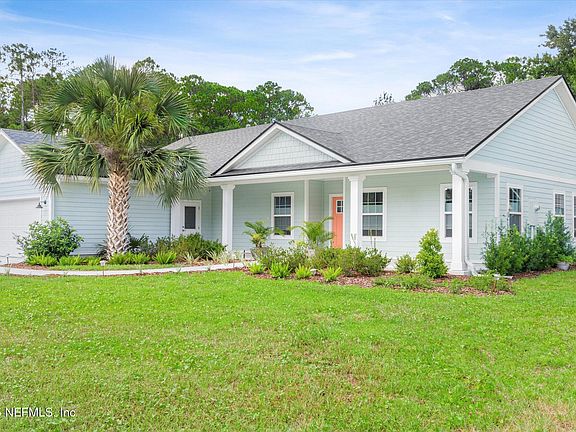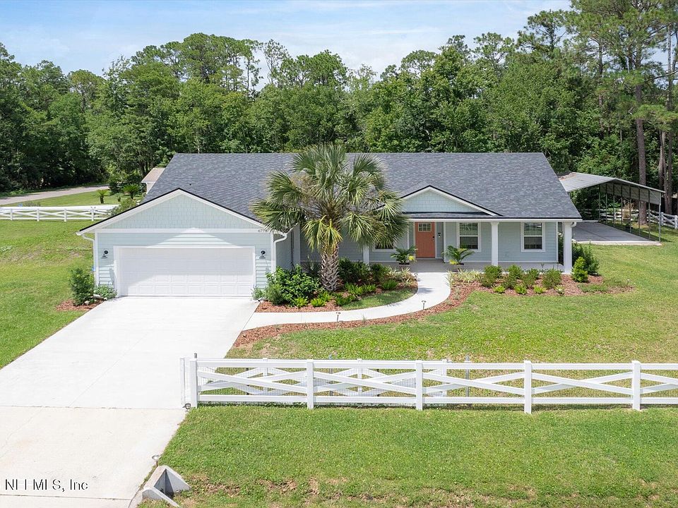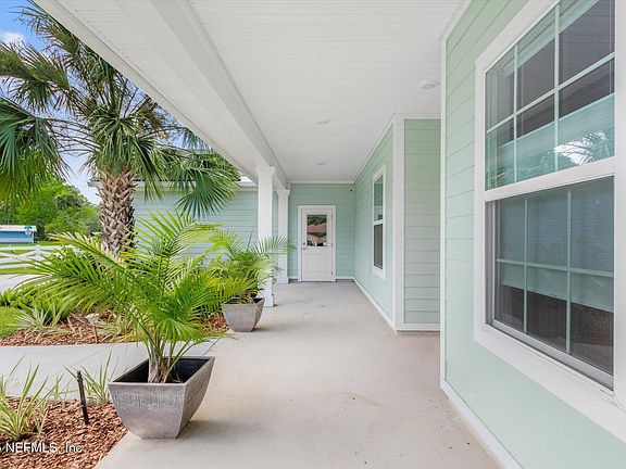 Welcome to this beautifully crafted 2024 home on a spacious half-acre, corner lot in St. Augustine. This 4-bedroom, 3-bath property offers nearly 1,800 square feet of open living with luxury vinyl plank flooring, upgraded tile, and elegant top-down bottom-up window shades. The gourmet kitchen features granite counters, upgraded cabinetry, a large island, and upscale fixtures. The flexible 4th bedroom doubles as a private office with a garage entrance and half-glass door with pet door. Enjoy a separate laundry room with sink, spacious front and back covered porches, remote patio blinds, an outdoor shower, and a fully fenced yard with kid/pet safety mesh and two gates. The oversized 2-car garage includes plumbing for a future bath or pet wash and a half-glass door. Also included: covered RV/boat port with pad, extra-large powered shed, tankless water heater, gutters with rain barrels, and smart features. All just 5 minutes to Crescent Beach and I-95.
