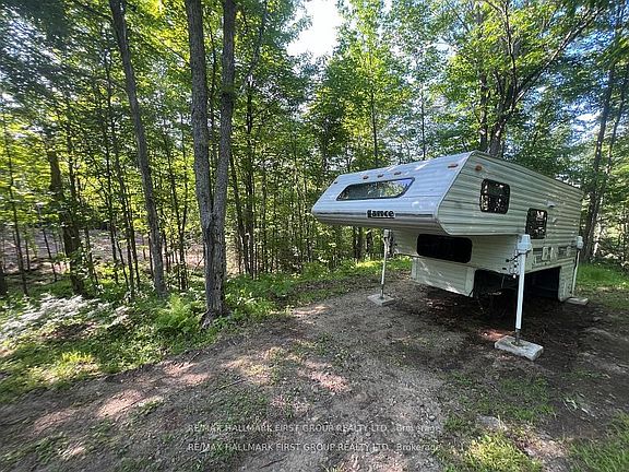 50 acres and an RV to stay in, build your dream home on the large 1acre clearing with fire pit. 1/2km walk/ATV to an off-grid hunt cabin on a private 7-acre creek fed pond in Madawaska Valley, surrounded by 1,000+ acres of Crown land. RV features propane stove, oven, fridge & hot water heater for showers in wet bathroom. Plus toilet, A/C, tv, queen size bed and dining table ready for you to stay comfortably. Hunt Cabin is accessible via 15 min walk through a private old-growth forest trail. The partially renovated cabin abuts the serene pond, offering several water accesses. Crown land trails provide access to nearby lakes, including Kamaniskeg Lake and Hinterland Beach. Perfect for ATV's & snowmobiles. The wrap-around driveway allows easy turnarounds for big vehicles, + space for campers & trailers. Unlimited space to build your hunt camp, cottage, or dream home. The property is zoned Marginal Agricultural, allowing for more building & business opportunities not normally available. Managed Forest Tax Incentive Program (MFTIP) has been applied to this property, including a 10 year forest management plan providing a 75% cost reduction on property taxes, only $89/yr!