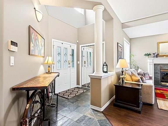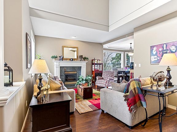 This beautiful west-facing duplex-style townhome offers over 3,000 sqft of elegant living with serene Colony Farm views. Enjoy year-round comfort with a 2024 heat pump/central AC and rare parking for 4 vehicles,2 in the garage plus 2 on the extra-long driveway. The impressive 18-ft ceilings in the living room creates a bright, airy feel that complements the open-plan layout. The renovated kitchen features granite counters and opens to a rear BBQ deck off the eating area. Upstairs, you’ll find 3 spacious bedrooms, a Luxurious 16' x 15'Primary suite a walk-in shower, soaker tub, dual sinks. The daylight basement provides exceptional flexibility with a 4th bedroom,Recroom,gamesroom,ideal for guests or hobbies.A private REAR yard & an 18' x 11' patio.Impeccably maintained.OPEN NOV 22 &23 1-3PM