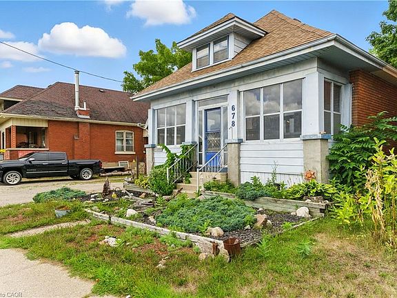 Welcome to 678 Colborne Street East, a charming bungalow full of character in the heart of Brantford. This home has been lovingly cared for by the same family for many years and is ready for its next chapter. Step onto the inviting covered front porch and feel the warmth of a home filled with timeless details, including original baseboards and moldings that add charm and personality to every room. Inside, you’ll find a bright and functional layout with 3 bedrooms (currently used as 2 with an upstairs laundry) and 1 full bathroom, offering plenty of space for family living. The kitchen is thoughtfully designed for everyday living, and the spacious basement is ready for your finishing touches – offering the potential to nearly double your living space. Outside, the extra-deep lot provides room for gardening, play, or entertaining, with plenty of parking for family and guests. Centrally located, everything you need is close by – shopping, schools, the hospital, and all of Brantford’s amenities. This home combines charm, space, and location, making it a perfect place to create lasting memories.