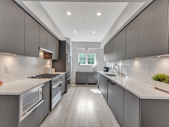 Discover this beautiful 2-bedroom, 2-bathroom townhome featuring a massive rooftop terrace and a fenced front patio perfect for entertaining or relaxing outdoors. The open-concept layout is elevated by contemporary designs and thoughtful upgrades, including the large kitchen with quartz countertops and backsplash and Fisher & Paykel appliances, Air Conditioning, sleek laminate flooring throughout, custom closet organizers, and smart home features for modern living. Ideally located just steps from a 55,000 sq. ft. YMCA, retail plazas, and everyday conveniences. This home comes with 2 underground parking stalls with EV charger and a secure storage locker.