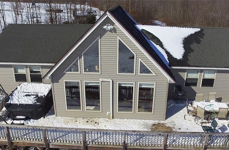 Incredible PRIVATE contemporary home. Breath taking views! Showstopping great room: soaring ceilings, hardwood floors, large windows, exposed beams. Giant deck w/ expansive views; HOT TUB! Kitchen: High-end features & finishes- new appliances, butcher block countertops, island, pantry. Primary suite: large bedroom w/ wood accent wall, cedar closet & bath. Bath is a truly inspired space with unique features. Large second bedroom, & second full bath rounding out first floor. Finished Basement: Renovated, walk-out, family room, second pantry, third bedroom & third full bath.
