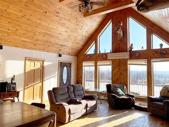 This outstanding home sits on 82+acres w/ fenced pastures, tillable land & woods, apple trees. FARMERS: SECOND WELL for livestock- 12 to 15gpm. OUTDOOR ENTHUSIASTS & CAMPERS: Atv & snowmobile trails; pond & firepit w/ 50amp plug for RV. HUNTERS: Excellent hunting, boxblinds & stands. Gravel pit. Outbuildings.