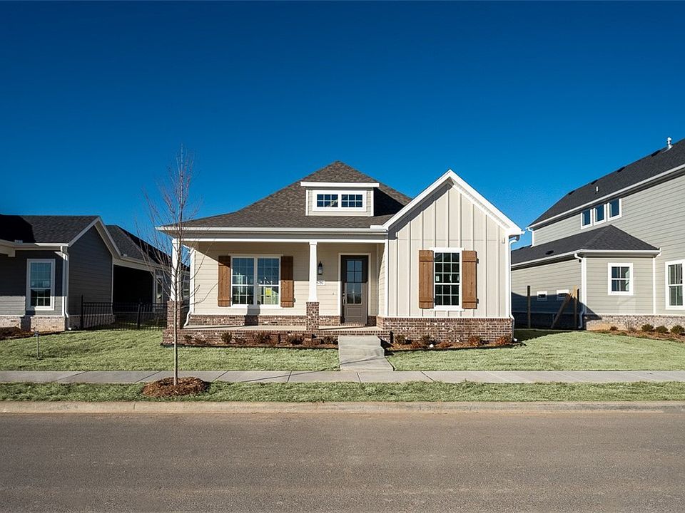 This community connects to the 120 acre Shaw Family Park.The Lily is a charming one-story floor plan with 3 bedrooms, 2 bathrooms, and a flex room that can be used as an office, fitness area, or even a fourth bedroom. As you approach the house, you're greeted with a massive front porch, perfect for relaxing or enjoying the outdoors. Upon entering, you find yourself in a beautifully designed open plan allowing ample natural light to flood the living spaces. The kitchen, dining area, and living room flow seamlessly into one another, creating a warm and inviting atmosphere. The owner's suite is located at the rear of the house, offering privacy and tranquility. It includes an en-suite bathroom and separate his and hers closets. The two additional bedrooms are on the opposite side of the house and share a full bathroom. Overall, the Lily is a well-designed home with a perfect balance of comfort, style, and functionality.
