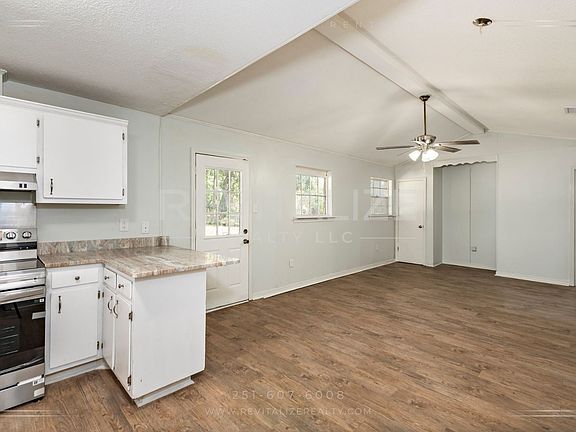 Welcome to this updated 4-bedroom, 2-bathroom home located in West Mobile. This property boasts a range of modern amenities that ensure a comfortable and convenient lifestyle. The kitchen is equipped with essential appliances, including a refrigerator and range, complemented by a vent hood for efficient ventilation. The home features luxury vinyl plank flooring throughout, adding a touch of elegance to the overall aesthetic. The bathrooms are well-appointed with a stand-alone shower in one and a tub shower in the other, catering to all your needs. The home has central heating and air conditioning and ceiling fans for year-round comfort. Outside, a gravel driveway provides ample space for parking. This home is a perfect blend of style and functionality, ready to be your new haven in a great location!