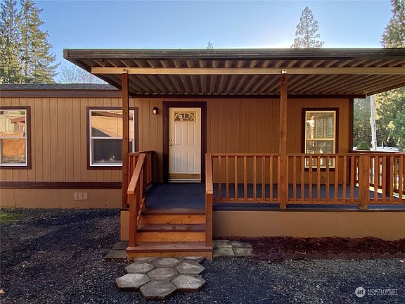 Quaint 2 bed, 1 bath home on a large corner lot in Robin Hood Village, an all-ages park nestled in a forested area above Robin Hood Resort on Hood Canal. New flooring, paint, windows and blinds throughout. All new fixtures in bathroom. New kitchen bay windows. Furnace recently serviced. New roof and newly built spacious covered front porch. Carport has additional storage. Tons of outdoor activities nearby including sightseeing, kayaking, hiking, golfing, oyster picking, crabbing, clamming, fishing, and much more. Park has 18 homes and 6 RV sites. 2 person limit in home. Small indoor pets only. Lot rent $530/month.
