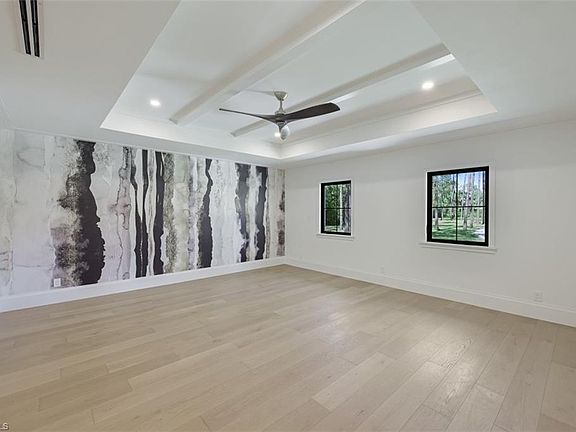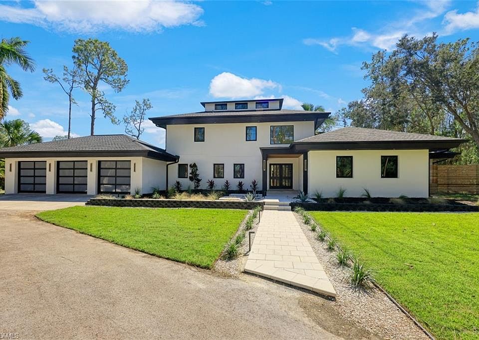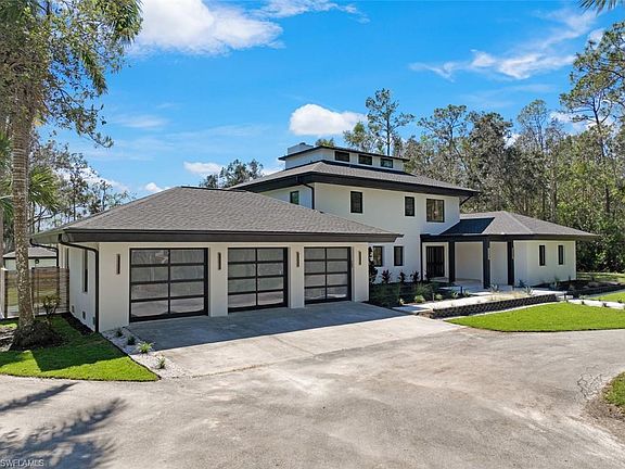 This redesigned home sits on a tree-lined street in the highly desired and horse friendly neighborhood of Livingston Woods in North Naples, just minutes from the area’s most coveted shops, restaurants and beaches! The estate has been entirely recreated with a modern vision, with each detail carefully selected with quality in mind. Throughout the home you’ll find beautiful engineered composite core oak flooring, solid-core interior doors, upgraded black PGT impact windows and much more. The home boasts a bright and airy floor plan- seamlessly connecting the kitchen to the living room and leading to the inviting backyard. The gourmet kitchen boasts new cabinetry, Quartz countertops, gorgeous marble backsplash with custom oak mantel hood and expansive 14ft island with bookmatched marble countertop. The oversized Master Suite features custom triple crown molding, dual walk-in closets with custom-built cabinetry, private views of the home’s greenspace and an ensuite bath that exudes true luxury. The outdoor living space includes a brand-new saltwater pool and spa, large patio space with tongue and groove cedar ceilings and a new outdoor summer kitchen! No damage done from Hurricane Ian!