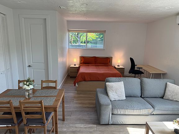 Private, newly renovated and beautiful studio, located five minutes driving distance from University of Miami- Coral Gables campus. Includes: private entrance, full kitchen/washer and dryer, queen bed, 2 night tables and lamps, large desk with chair, TV, sofa with 2 coffee tables, dinner table with 4 chairs, attached private bathroom, 2 large closets, utilities, a/c, wifi and parking. Minimum 9-12 months of contract. First month and deposit required to reserve the studio. No smoking inside the studio. Only for one person. No pets allowed. Rent includes: utilities, parking, laundry and wifi.