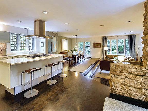 Welcome to this STRIKING Chicago residence with an open floor plan and sun-filled California vibes, offering approximately 3,000 square feet of finished living space in the heart of the desirable Wildwood neighborhood of Forest Glen. Inside, the OPEN, MODERN LAYOUT blends style with livability. Expansive windows flood the home with natural light, while a natural stone fireplace creates an inviting focal point enjoyed from the living, dining, and kitchen areas. The POGGENPOHL kitchen anchors the open-concept space, enhanced by a sleek Dorn BRACHT, FISHER & PAYKEL refrigerator, and premium MIELE appliances-a showcase of both design and performance. From this level, you also have direct access to the ATTACHED GARAGE, adding everyday convenience to the home's striking design. UPSTAIRS, the primary suite is expansive and serene, with walls of windows, a spacious sitting area, an oversized walk-in closet, and a spa-like bath featuring all KOHLER fixtures, dual vanities, a walk-in shower, and a soaking tub with a dramatic ceiling-mounted DROP FILLER. Three additional bedrooms throughout the home offer generous space for family, guests, or home office needs. On the LOWER LEVEL, you'll find a large recreation room/home theatre and a private office-perfect getaways for quiet work and recuperation. Outdoor living includes a deck overlooking a LARGE, LANDSCAPED BACKYARD. There is more than enough room for hosting large outdoor gatherings, extensive gardening, and play! Set on a tree-lined street in Chicago's WILDWOOD neighborhood of FOREST GLEN, this home enjoys the best of both city and suburban living. Wildwood is known for its low density, large lots, and stately homes. JUST STEPS from the Metra and Caldwell Woods, and only MINUTES to Costco, the Edens & Kennedy Expressways, and O'Hare, the home is also just three blocks from St. Mary of the Woods School and Wildwood Elementary-perfectly situated for everyone's needs!