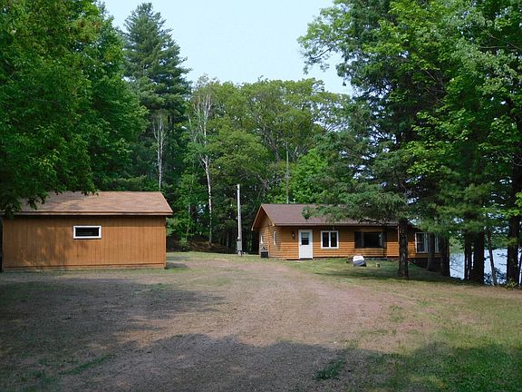 Escape to Tranquility on Half Moon Lake – 752 Feet of Waterfront! Welcome to your private lakefront retreat on the sandy, level shores of beautiful Half Moon Lake in Iron River, WI. Set on 1.96 acres with an incredible 752 feet of frontage on this 106-acre gem, this property offers unmatched privacy, natural beauty, and the peaceful Up North lifestyle. Tucked among mature trees in a park-like setting, this charming ranch-style home features two bedrooms, one bath, and a spacious detached 2-car garage with electric, concrete slab, and workbench. Enjoy the open-concept living and dining area, featuring vaulted beamed ceilings, rich hardwood floors, and large picture windows that offer stunning views of the lake and natural surroundings. A cozy bay window and wood-burning fireplace add to the ambiance, making it the perfect place to unwind. The updated kitchen includes stainless steel appliances (stove, microwave, dishwasher, and refrigerator). A dedicated laundry room features a washer and dryer, shelving, and houses the natural gas furnace, central air, pressure tank, and water heater. Fiber-optic internet from Norvado makes working remotely a breeze. Enjoy the bonus sunroom – ideal as a home office, creative space, guest room, or exercise area – with patio doors that lead out to the brand-new deck (2024) overlooking the bay. The dock stays in year-round, offering easy access to excellent fishing, kayaking, canoeing, swimming, and boating. With space to expand—build a pole barn or even an additional home—this property offers endless potential. Located near the Chequamegon National Forest and the Tri-County Corridor (68 miles of multi-use trails), outdoor recreation is at your doorstep. Just 20 minutes to Ashland and 1 hour to Duluth for shopping, dining, and the airport. Don't miss your chance to own this one-of-a-kind lakefront getaway—schedule your showing today!