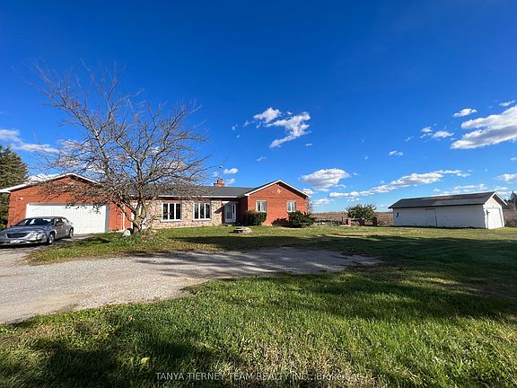 Charming All-Brick Bungalow on Private Country Setting! Discover the perfect blend of country charm and modern convenience in this beautiful 3-bedroom, 3-bathroom all-brick bungalow set on a picturesque farm property. Surrounded by trees and nature, this home offers peace, privacy, and tranquility - all just minutes from local shops and amenities. Step inside to find a carpet-free interior featuring gleaming hardwood and ceramic tile floors throughout. The open-concept living, dining, and kitchen area offers large windows that fill the space with natural light. The practical kitchen boasts marble countertops, a breakfast bar, and plenty of storage. A walk-out from the dining area leads to a spacious deck overlooking a serene backyard with grass, trees, and open sky - an ideal spot for morning coffee or summer barbecues. The primary bedroom offers a relaxing retreat with a 4-piece ensuite and a skylight for added natural light. Two additional bedrooms share another 4-piece bath, also with a skylight. A convenient main floor laundry room with washer, dryer and utility sink. Enjoy easy access through a separate mudroom entrance and direct entry to the attached 2-car garage with ample storage and walk-out to backyard. If you're looking for a peaceful, nature-filled lifestyle without sacrificing proximity to town conveniences, this inviting bungalow is the perfect place to call home.
