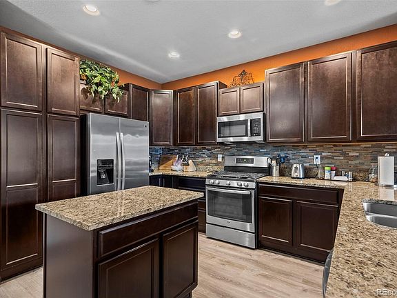 Step into modern Denver living with this stunning 2-bedroom, 3-bathroom row home in the vibrant Midtown neighborhood, located just a short distance from Trailside Academy. Designed for both daily comfort and entertaining, the open-concept main level seamlessly connects the spacious kitchen to the living area. The kitchen features a large island, granite countertops, and stainless-steel appliances, making it perfect for preparing a feast or watching the big game while you cook. Upstairs, the primary suite offers a serene escape, complete with a five-piece en suite bath, a walk-in closet, a private retreat area, and mountain views, adding a peaceful backdrop. Outside, a functional front porch provides a perfect spot for morning coffee, and the attached two-car garage offers both convenience and extra storage. Living in Midtown places you in a flourishing, community-focused neighborhood with a wealth of amenities, including a community garden, dog park, the 21-mile bike path that connects you to the area's extensive trail system, and the summer fun of Midtown Home Plate Park's splash park. You can also grab a beer with friends at Bruz Beers or enjoy a meal at Early Bird restaurant, both conveniently located in the neighborhood. The location is a commuter's dream, offering exceptional drivability and connectivity, and is just a quick drive from downtown Denver. With the Pecos Junction Park-n-Ride nearby, residents have direct access to the G Line commuter rail, and the neighborhood offers quick access to major highways, simplifying trips throughout the metro area and to the mountains. Nearby attractions, including the River North Art District (RiNo) with its many galleries, restaurants, breweries & concerts. Set your personal showing today!